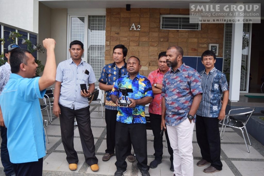 Pelatihan pembuatan Peta Tematik Menggunakan Drone dimulai dengan operasionalisasi pesawat tanpa awak atau UAV Drone. Kemudian pada hari berikutnya materi pelatihan adalah pembuatan dan pengolahan peta tematik. Bimtek pemetaan drone berlangsung setiap hari jam 08:30 – 15:00 WIB bertempat di gedung Smile Group, jalan Dr. Wahidin Sudirohusodo, Kuantan Mlati Square kav. R3-R5 & A2 Sleman, DIY. (hd)
