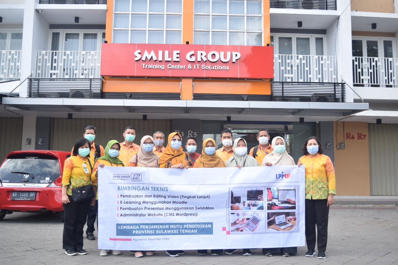 Pandemi masih belum usai, akan tetapi upaya peningkatan kapasitas sdm tidak boleh terhenti. Pada saat ini tidak hanya pelatihan online tapi juga offline atau tatap muka sudah dapat dilaksanakan dengan protokol kesehatan yang ketat. Untuk itu Lembaga Penjaminan Mutu Pendidikan atau LPMP Sulawesi Tengah mengirimkan beberapa sdm terbaiknya guna mengikuti Pelatihan Pengembangan Kapasitas SDM Bidang Teknologi Informasi, yakni Pembuatan dan editing video, e-Learning menggunakan Moodle, Pembuatan presentasi menggunakan SwishMax, serta Administrator Website (CMS WordPress). Pelatihan berlangsung di gedung Smile Group, jalan Dr. Wahidin Sudirohusodo, Kuantan Mlati Square kav. R3-5 & A2 Sleman, DIY. Pelatihan dicover oleh para pemateri terbaik di bidangnya.