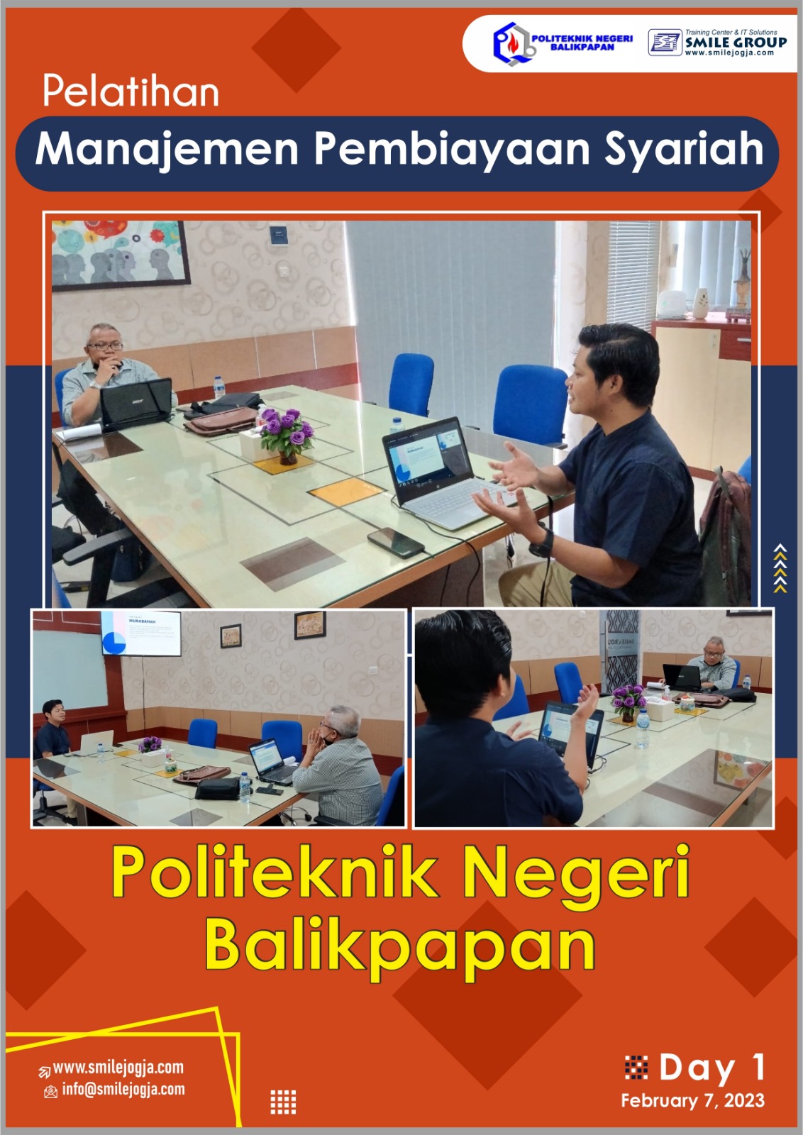 Bimtek Keuangan Syariah – Politeknik Negeri Balikpapan Pelatihan Manajemen Pembiayaan Syariah Dipublikasikan pada 08/02/2023 | Kategori Bimbingan Teknis, Kegiatan Pelatihan, Pelatihan Singkat, Pengembangan SDM, Workshop Ekonomi atau keuangan syariah adalah sebuah potensi sekaligus tantangan saat ini dan di masa yang akan datang. Kalangan akademisi menyambut baik dengan pembukaan prodi atau jurusan yang berkaitan dengan ekonomi syariah. Untuk itu Politeknik Negeri Balikpapan mengirimkan beberapa sdm terbaiknya guna mengikuti Bimtek Manajemen Pembiayaan Syariah di Smile Group Yogyakarta. Pelatihan keuangan atau pembiayaan syariah berlangsung tanggal 7-8 Februari 2023 di gedung Smile Group Yogyakarta, jalan Dr. Wahidin Sudirohusodo, Kuantan Square Mlati kav. R3-5 & A2 Sleman, Daerah Istimewa Yogyakarta. Pembiayaan syariah adalah dunia finance yang unik dan menarik. Hal ini karena pembuayaan syariah berbeda dengan pembiayaan konvensional yang sudah terlebih dahulu berkembang di banyak negara. Akan tetapi sebagai sebuah fenomena, pembiayaan syariah akan semakin berkembang, dan ini membutuhkan pemblajaran dan penelitian lebih giat dari semua stakeholder, terutama terkait dengan analisis kredit. Analisis Kredit / Pembiayaan Syariah merupakan program pelatihan awal yang diberikan kepada mereka yang bekerja di divisi kredit atau lending lembaga keuangan baik bank syariah maupun non bank syariah (BPRS, Multifinance, BMT, dll). Dengan memiliki skill analisis kredit yang tajam pemberian kredit kepada customer dapat terjamin pengembaliannya serta target penjualan perusahaan dapat dicapai. Peran analisa kredit sangatlah penting dalam mempertahankan tingkat risiko kredit/piutang. Untuk dapat melakukan analisis kredit yang baik dibutuhkan kemampuan menganalisa kemampuan dan kemauan membayar dengan menganalisa karakter, laporan keuangan, operasional, kondisi bisnis termasuk ANALISA REKENING dan PROYEKSI LABA RUGI bagi pemberian kredit perseorangan, perusahaan dan pengusaha. Kata kunci : Bimtek Manajemen Pembiayaan Syariah, Pelatihan Keuangan Syariah, Pelatihan Manajemen Pembiayaan Syariah, Pelatihan Pembiayaan Syariah Ingin bertanya tentang Bimtek Keuangan Syariah – Politeknik Negeri Balikpapan Pelatihan Manajemen Pembiayaan Syariah? Referensi halaman : Bimtek Keuangan Syariah – Politeknik Negeri Balikpapan Pelatihan Manajemen Pembiayaan Syariah. Pertanyaan / Pesan Anda :